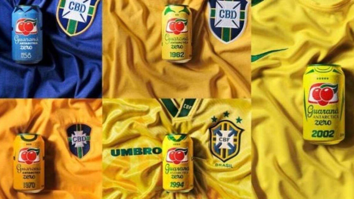 Cinco conquistas em Copas do Mundo. Cinco uniformes icônicos. Essa é a base criativa da nova coleção de latas colecionáveis do Guaraná Antarctica Zero, que começam a ser distribuídas em supermercados de todo o país ao longo deste mês. Cada versão traz elementos visuais inspirados nas camisas da Seleção Brasileira usadas nas campanhas vitoriosas de 1958, 1962, 1970, 1994 e 2002.
